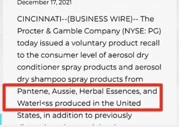 正在主动召回在美国生产的潘婷等