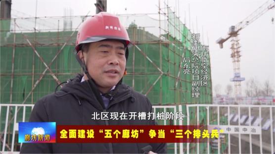 廊坊临空经济区新奥研究总院项目副经理 后东亮现在南区已经施工至三层,北区现在开槽打桩阶段。预计明年,南区在七八月份主体封顶,北区基础施工完成。