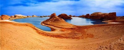 青海省海西蒙古族藏族自治州柴旦水上雅丹地貌。
