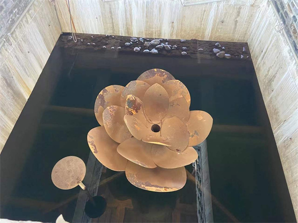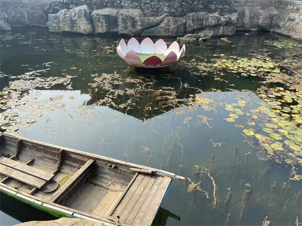 再往里走,登上“秦淮之源”景点,从亭子往下看,莲花装饰已锈迹斑斑。