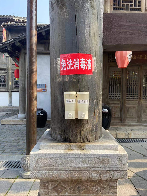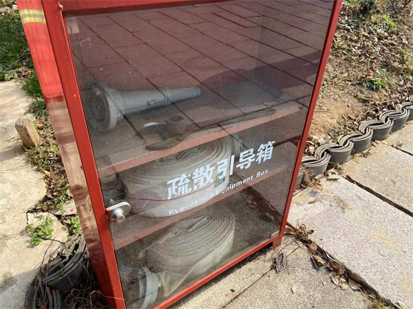景区内的消防设备也是锈迹斑斑。所有废弃灭火器全部堆放在一处,其他地方也未发现新的设备。柱子上虽放置的免洗消毒液,也是长期没有处理。