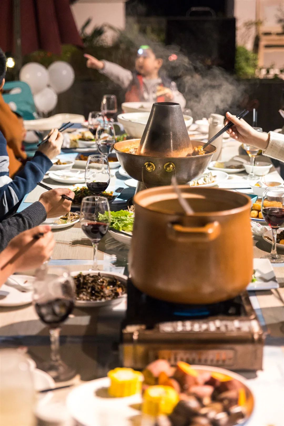 冬天和家人一起围坐在餐桌前品尝热气腾腾的十堰美食