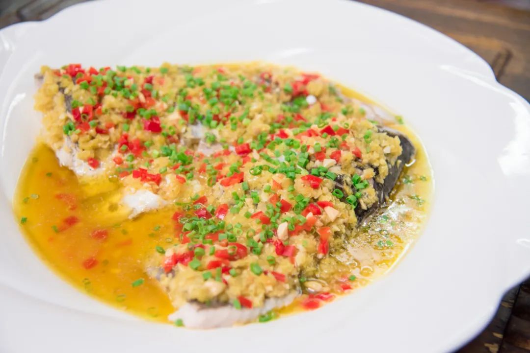 黄龙鱼头巧妙地将鱼的“鲜”和辣椒的“辣”融在一起,经蒸制后将鲜香锁在鱼肉里,看起来色泽鲜亮,吃起来鲜香爽辣。