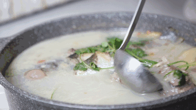 新鲜打捞上来的鱼经过师傅精心烹饪,小火熬出来的鱼汤鲜香味美,鱼肉细嫩,营养可口,老少皆宜。09