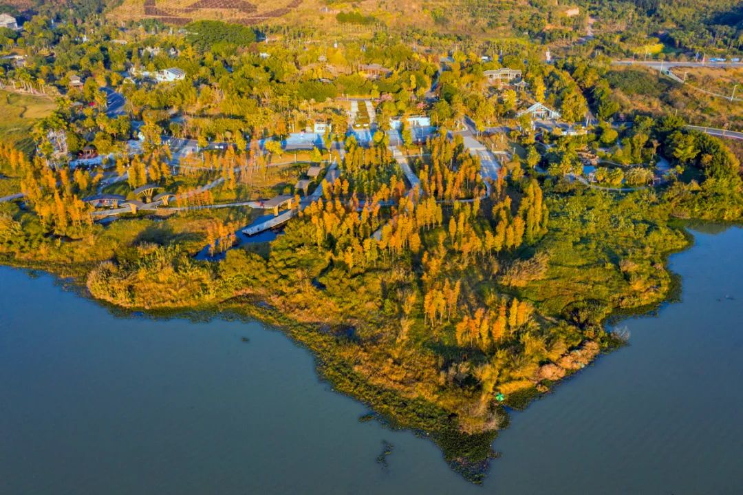 ▲近日,梧州市龙圩区苍海湖湿地公园内的水杉等树种渐次变黄,层林尽染,景美如画,成为市民休闲好去处。何华文 摄发布会答记者问(摘选)