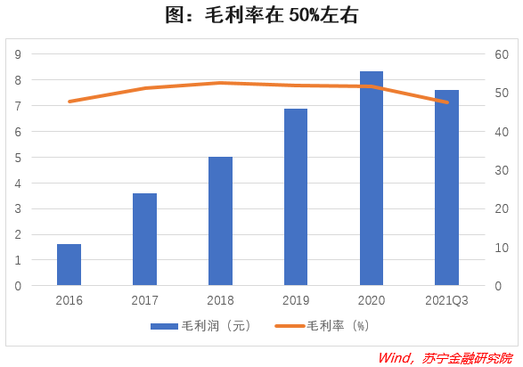 2020年公司全年实现营业收入16.14亿元,同比增长21.71%;全年实现净利润2.75亿元,同比增长14.79%;全年实现毛利润8.33亿元,同比增长21.23%。2021年前三季度公司实现营业收入15.98亿元,同比增长59.02%;实现净利润2.73亿元,同比增长75.40%;实现毛利润7.59亿元,同比增长49.68%。
