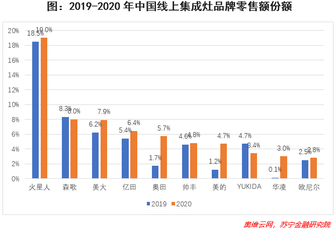 在线下经销商面临转型困难期,火星人看到了互联网电商不可逆的发展潮流,抓住机遇,发布了E3集成灶,将其作为电商款产品率先进驻天猫、苏宁易购、京东等电商平台,成为电商平台“集成灶”类目的开创者,引领渠道变革,开启线上销售线下服务的新零售模式,推动集成灶电商高速发展;