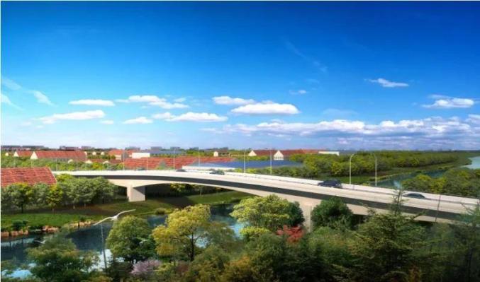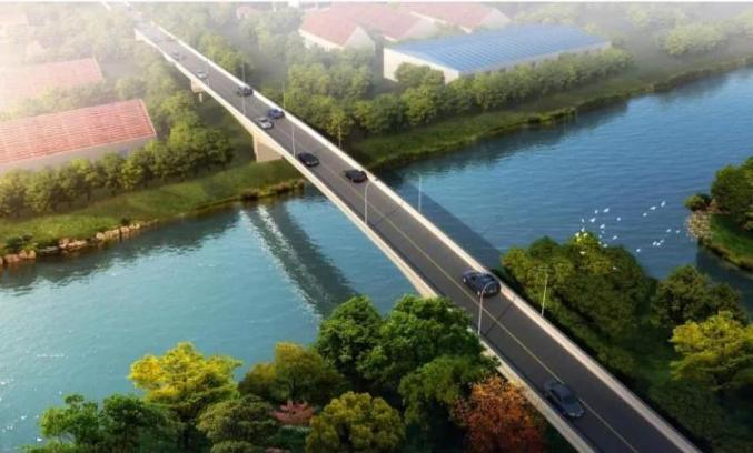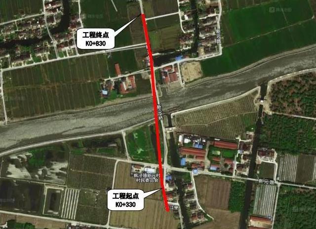 ▲新元大桥透视图新元大桥位于枫泾镇新元村内,与村内主干道路新元路相交,向北跨河沟通了新元村范塘以北的1800余名村民。