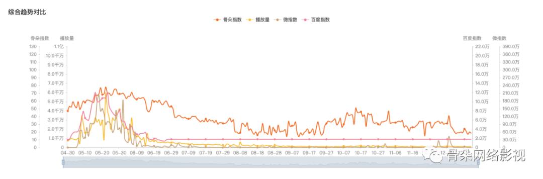 据骨朵数据显示,制作成本并不算高的《御赐小仵作》其实在开播前夕未能得到较多关注,然而随着网友对于剧集内容的讨论以及口碑好评的逐渐发酵,该剧的微指及百指走势在开播两周后直线走高,整体在播期间的骨朵热度峰值也达到了78.95。因此从剧播热度的层面上来看,《御赐小仵作》绝对算是一匹从腰部作品里跑出来的黑马。