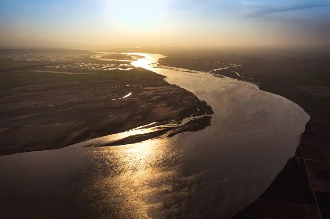 流经第二级阶梯,黄土高原赋予黄河那浑厚的土黄色,赋予了它“黄河远上白云间,一片孤城万仞山”的那股大西北特有的苍凉悲壮。进入第三级阶梯后,那股坚定悲壮的气质更是吸引了无数文人为其折腰,王之涣咏叹“白日依山尽,黄河入海流”,李白也赞它“黄河之水天上来,奔流到海不复回”。