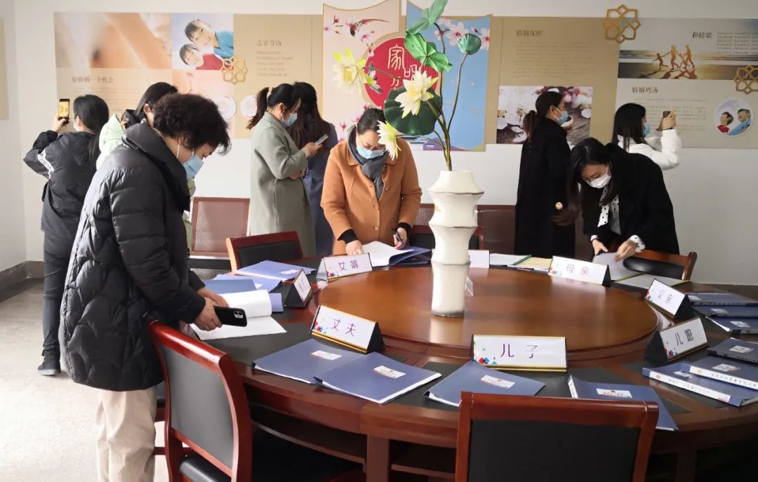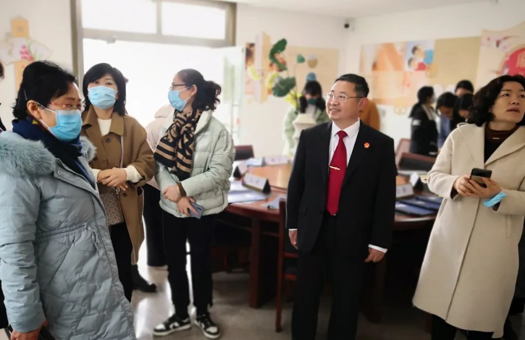 杜美珠一行现场观摩了法庭的“倡和园”、家事纠纷调解室、家事审判庭、心理辅导室等场所,查看了相关工作资料,并听取了法庭关于家事审判工作,特别是家事纠纷调解工作的情况介绍。
