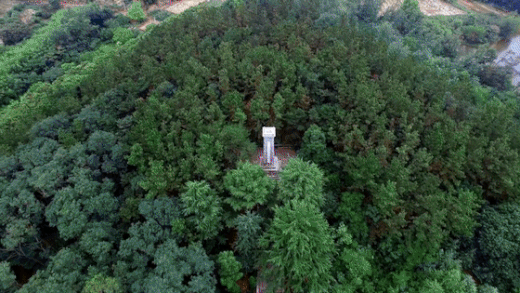 顺着平坦的柏油路走进这片红色圣地,两侧林茂草密,环境幽静。远远的,见到两棵龙柏如火炬般挺立在大门两旁,一座红瓦白墙的纪念堂式建筑,掩映在密林之中,这里就是天福山起义纪念馆。