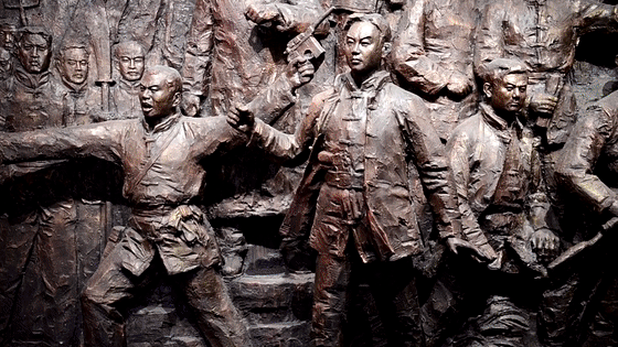 进馆,便是一幅巨大的“天福山起义”的人物浮雕,让我们回到了那个战火硝烟的年代。1937年11月的一天,一位青年秘密走进了距离天福山2公里的沟于家村,他不顾身体的虚弱和疲劳,在中共胶东临时工委的基础上,成立了第四届中共胶东特委。经过认真的讨论,特委决定以“一一·四”暴动后保存下来的武装游击队为基本力量,建立一支由共产党独立领导的胶东人民抗日武装。