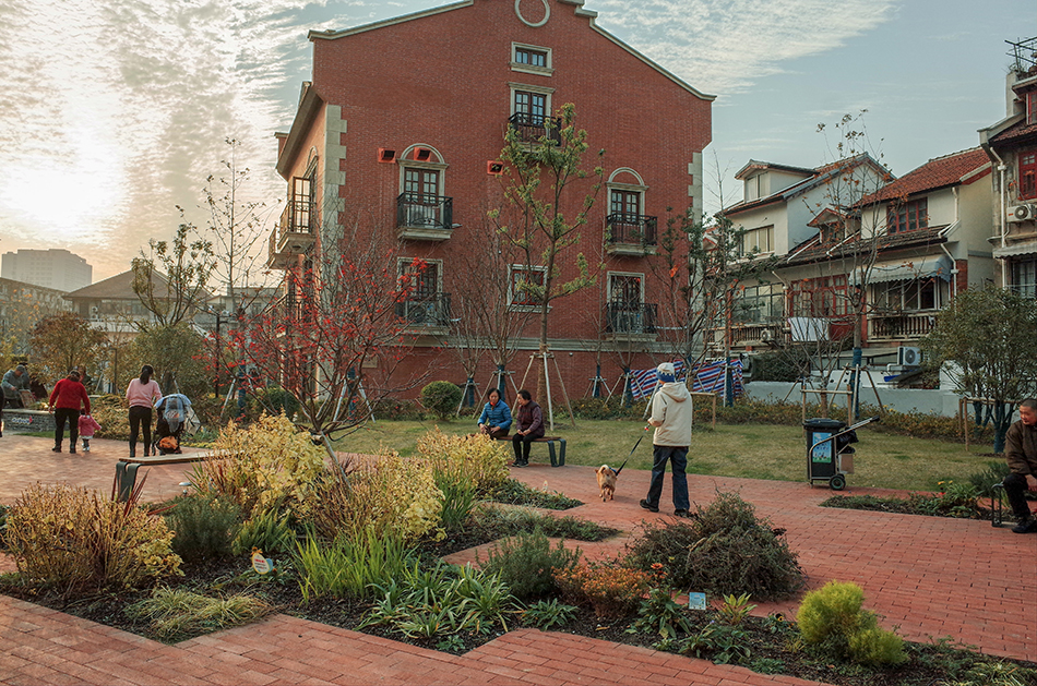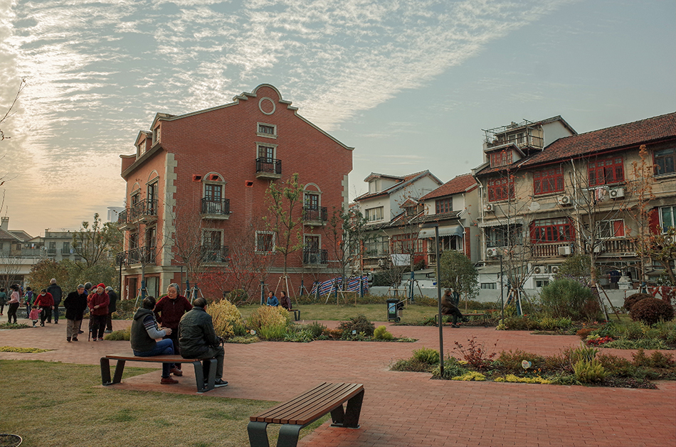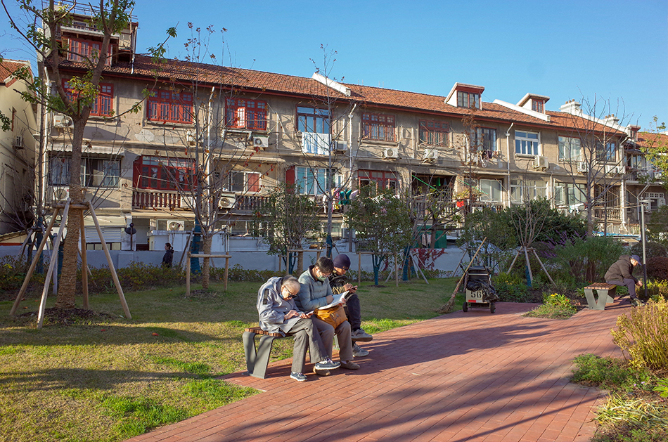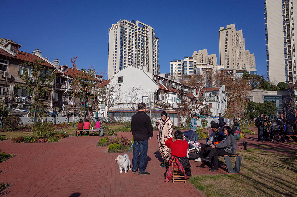 冬天太阳出来的时候,上海复兴中路的口袋公园“追梦园”便热闹起来。