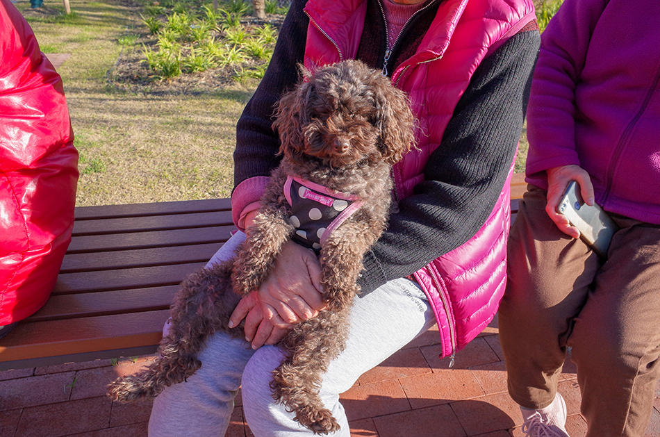 长椅上,有四个“老姐妹”紧挨着坐在一起,背对着太阳唠家常;有人牵着狗走走停停,累了就抱着狗一起休息;有人独自坐着电动轮椅来,站在一角抬腿伸臂做锻炼;有人勾着腰捧书阅读,阳光晒得人暖暖的。