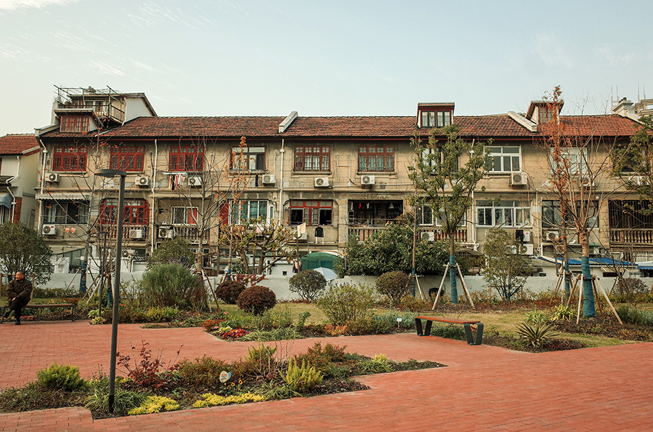 在寸土寸金的黄浦区,新建一块5000平方米的绿地是难得的。追梦园便是一块宝地,紧邻新天地地铁口,一侧是复兴中路,另一侧是年代久远的居民住宅。草坪包围下,一条红砖步道延伸开来,花卉绿植交错生长,座椅散布,人们在这座追求自然的小公园里休憩。