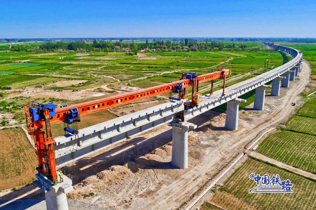 酒额铁路黑河特大桥是全线最长的桥梁,桥长2429米。黑河是我国西北地区第二大内陆河,夏季处于丰水期,水库蓄水量增长,增加了施工难度。建设期间,参建单位创新施工工艺,采用悬臂浇筑、搭设栈桥、围堰施工等方法,破解了施工难题,提高了施工效率。