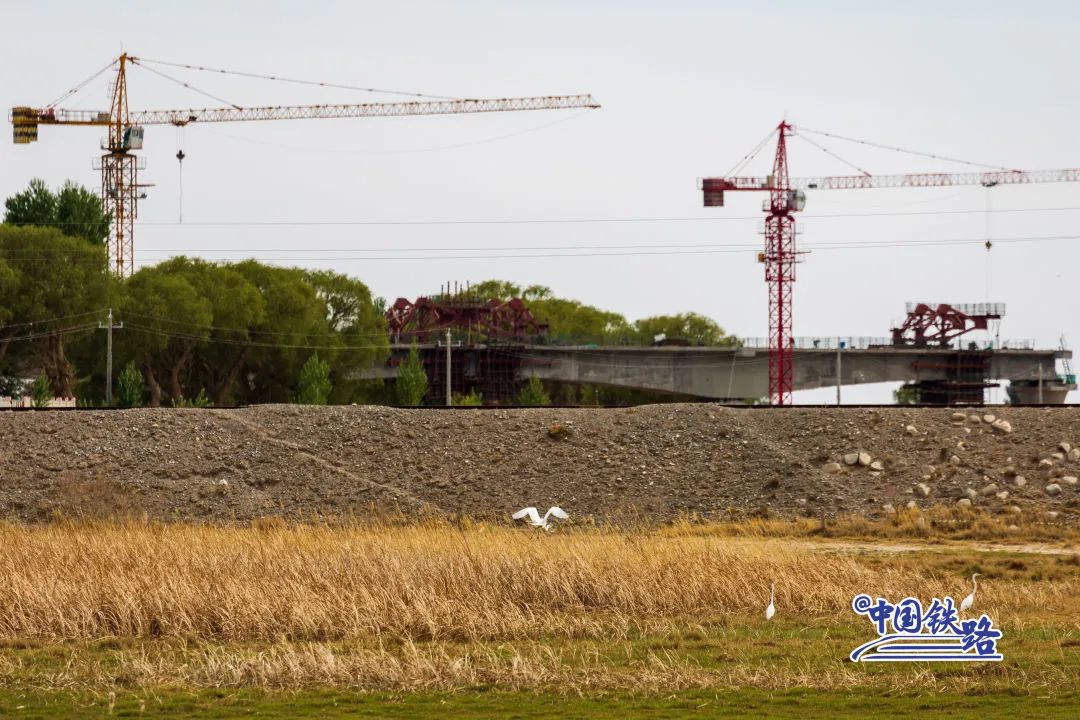 酒额铁路建设注重绿色环保施工,在黑河特大桥施工现场附近,水鸟栖息翱翔,一片祥和。