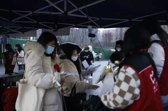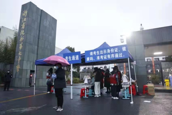 记者在中国美术学院研究生考试现场看到,考区入口处设有体温监测点,检测点设立多条体温检测通道,工作人员对所有进入考点的考生及考试工作人员进行体温测量,以人脸识别设备验证考生身份和健康码信息,核验行程卡和核酸检测数据。