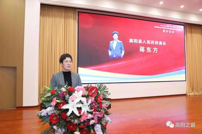 蒋东方在致辞时表示,高阳区位优越、高速环绕、生态优良、水网密布、人文荟萃,是投资布局的绝佳之地,高阳正成为产业聚集的新高地、投资兴业的新热土,成为最具活力、最具潜力的美好生活之城。循环经济+数字农业产业基地暨高阳县中央厨房项目是双方优势互补、信息共享、互利双赢的集中展现。高阳县委、县政府将以最优惠的政策、最优越的环境、最优质的服务,帮助项目早开工、早建设、早投产、早见效,全力支持聚利和集团在高阳的发展,实现互利双赢。