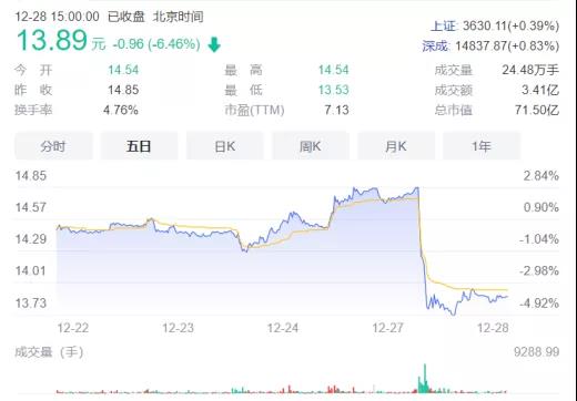 受此消息影响,12月28日开盘,科华生物加速下跌,截至收盘,其股价报收13.89元/股,跌幅达到6.46%。