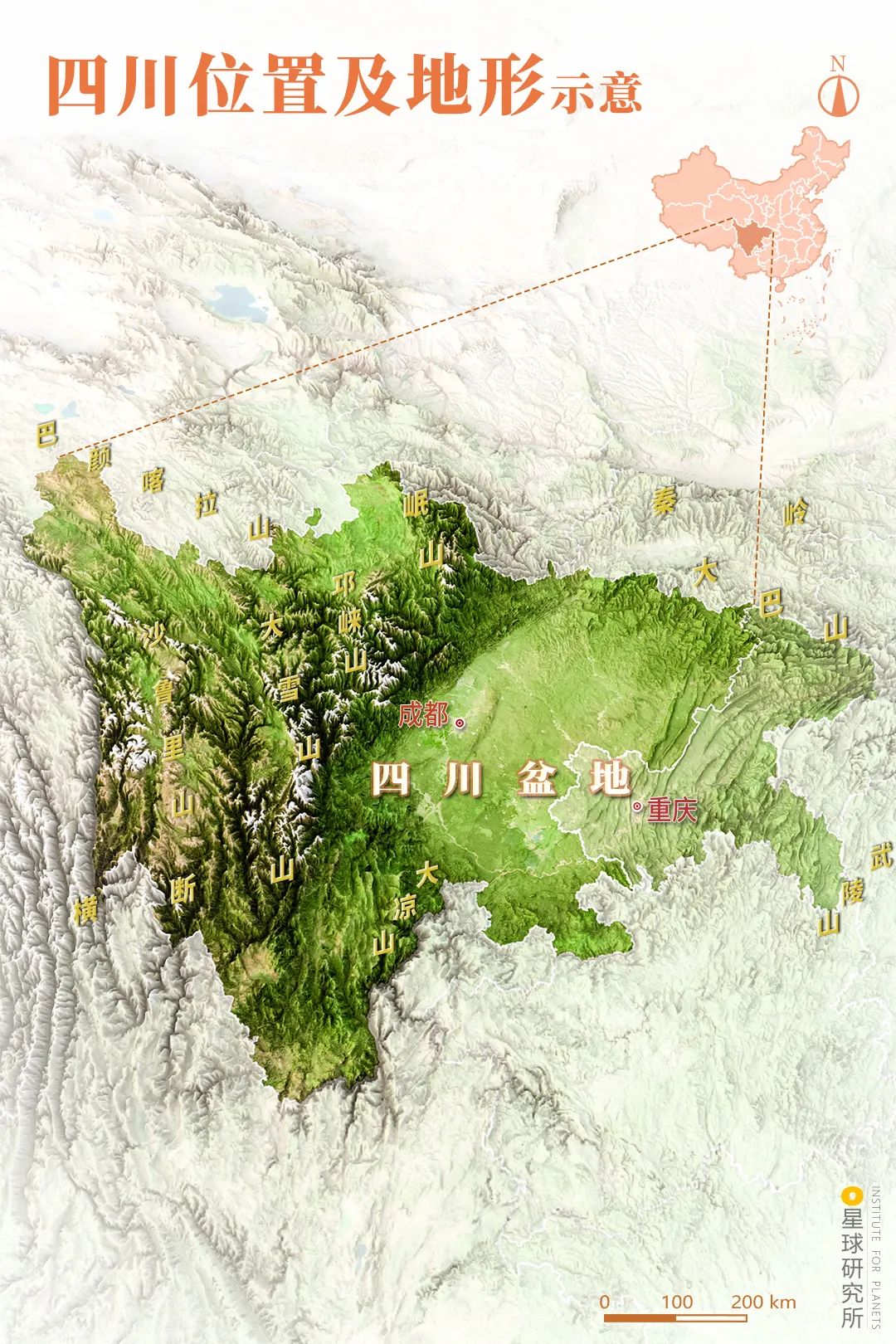 (四川位置及地形示意,制图@陈志浩/星球研究所)