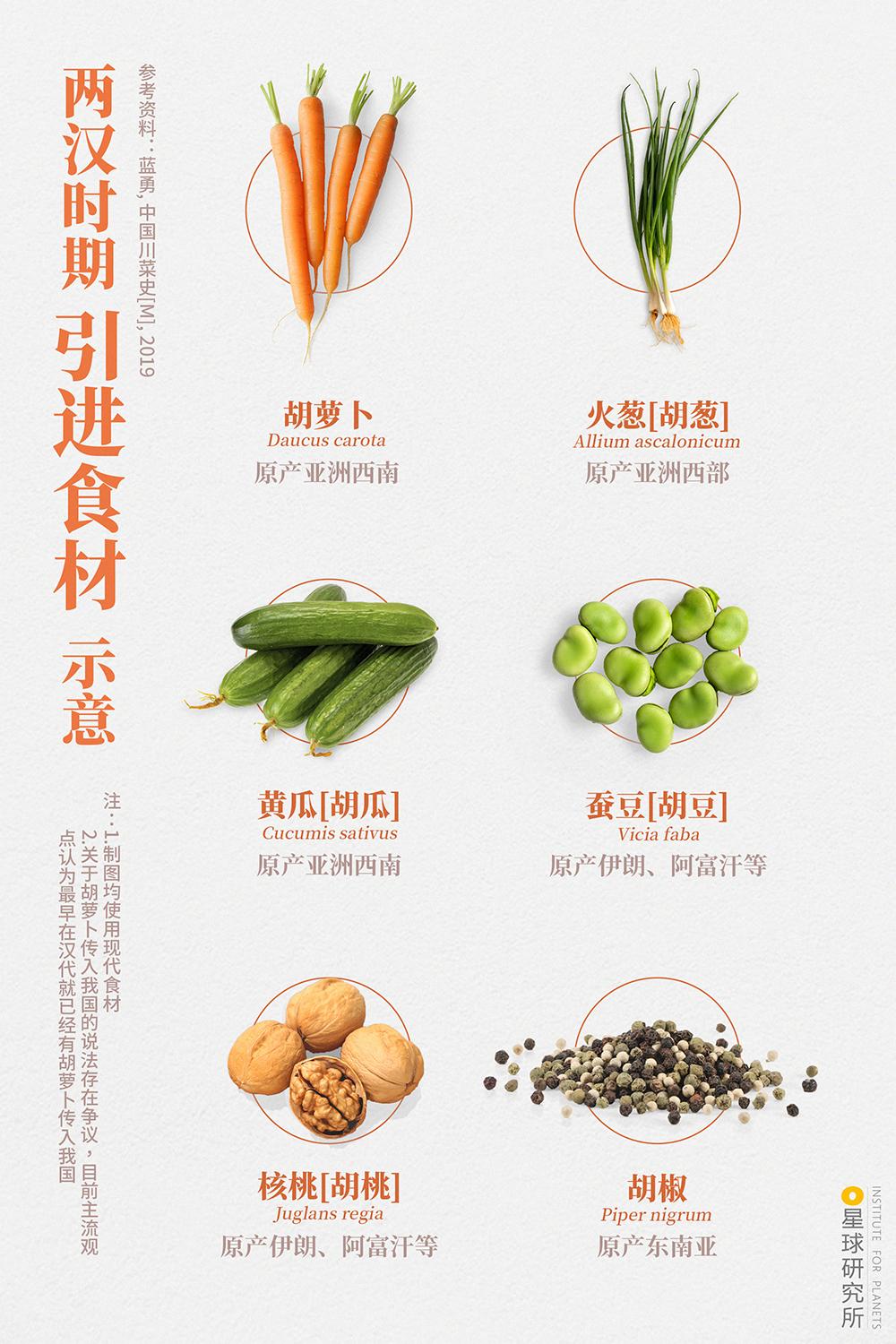 (两汉时期引进食材示意,制图@罗梓涵/星球研究所,图片来源@视觉中国)