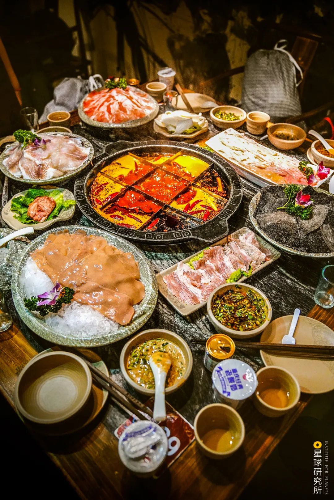 (上文数据来源于曹雨著《中国食辣史》;下图是重庆九宫格火锅,请滑动查看更多火锅类型,摄影师@李艺爽)