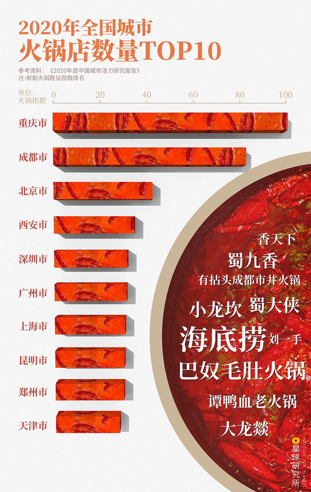 (2020年全国城市火锅店数量TOP10,制图@罗梓涵/星球研究所)