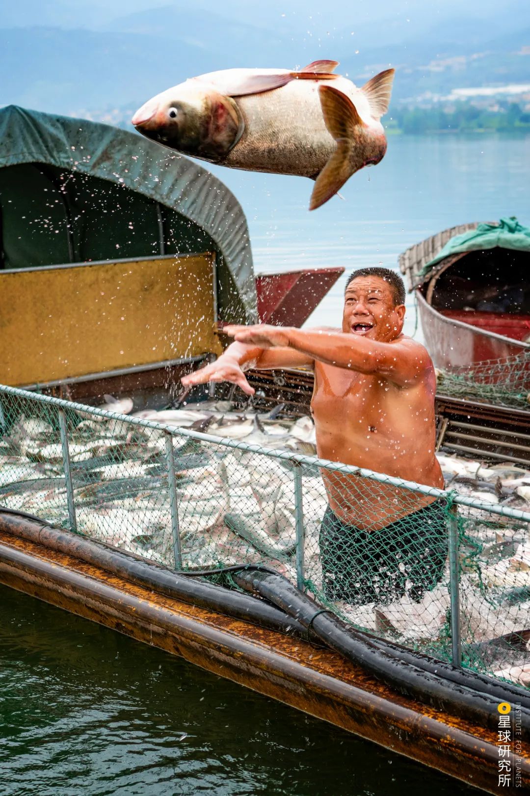 (这里还是“河鲜的世界”,如今四川淡水鱼养殖面积、产量和产值均居西部第一;下图是四川渔民捕鱼,请滑动查看萝卜丰收与莴笋丰收场景,摄影师@冉坚&张晓&丁嘉一)