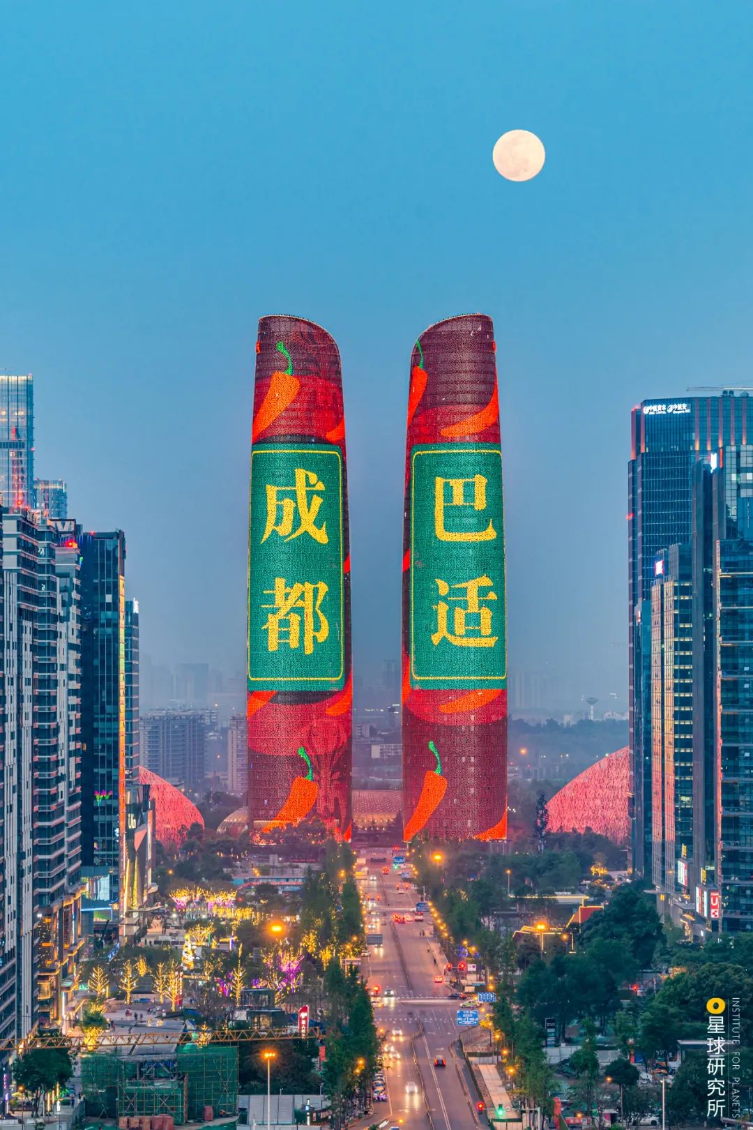 (美食也是“巴适四川”的代名词之一;下图是成都金融城双子塔,巨大的灯光秀画面上还带有辣椒元素,摄影师@何世海)