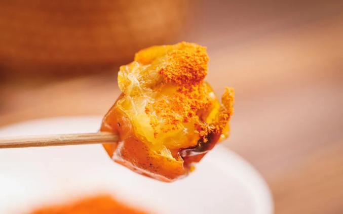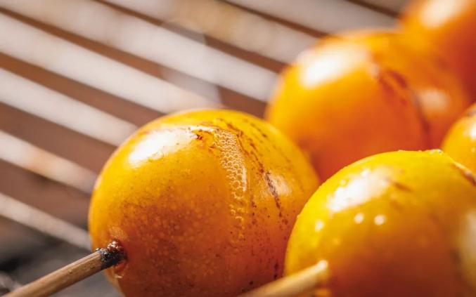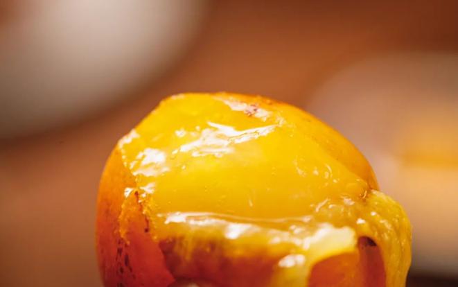 金桔加热后,香气鲜明,甜度更加浓缩,皮经过炙烤后,口感更脆更薄。一口咬下,像是在吃果汁软糖,嘴里溢满了鲜甜的果味,不愧是爆汁小炸弹!