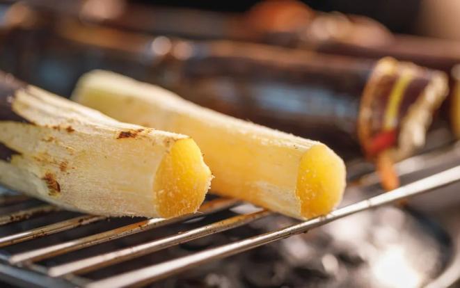 还有更进阶的吃法——蜂蜜烤梨。梨子洗净切片,均匀涂抹蜂蜜,撒上盐、黑胡椒调味。将梨片放进烤箱,220℃烤制5分钟,蜂蜜完全渗入梨片,胡椒的辛辣中和了蜂蜜烤梨的甜。05 | 烤甘蔗