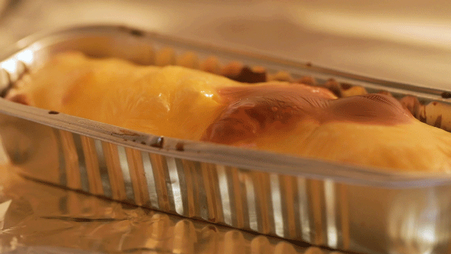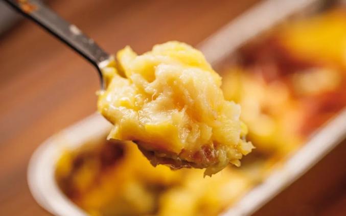 在烤箱的高温下,芝士仿佛支起了一个小帐篷,鼓鼓囊囊的,榴莲“奇特”的香味也变得柔和起来。外皮透着焦香。大块绵密的榴莲果肉入口即化,每一口都是果香和奶香的碰撞,即使是不爱吃榴莲的人也能接受。不过吃到最后有点腻了,芝士和榴莲的热量暴击啊,偶尔来一次就行了。