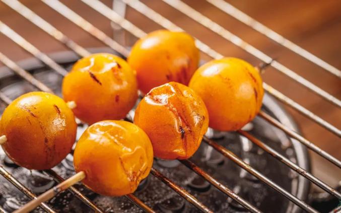 广西盛产金桔,当地人还会用皮滑多汁的金桔做串串,烤着吃。三个一串,放在烤盘上,火候一到,滋滋滋往外冒汁。