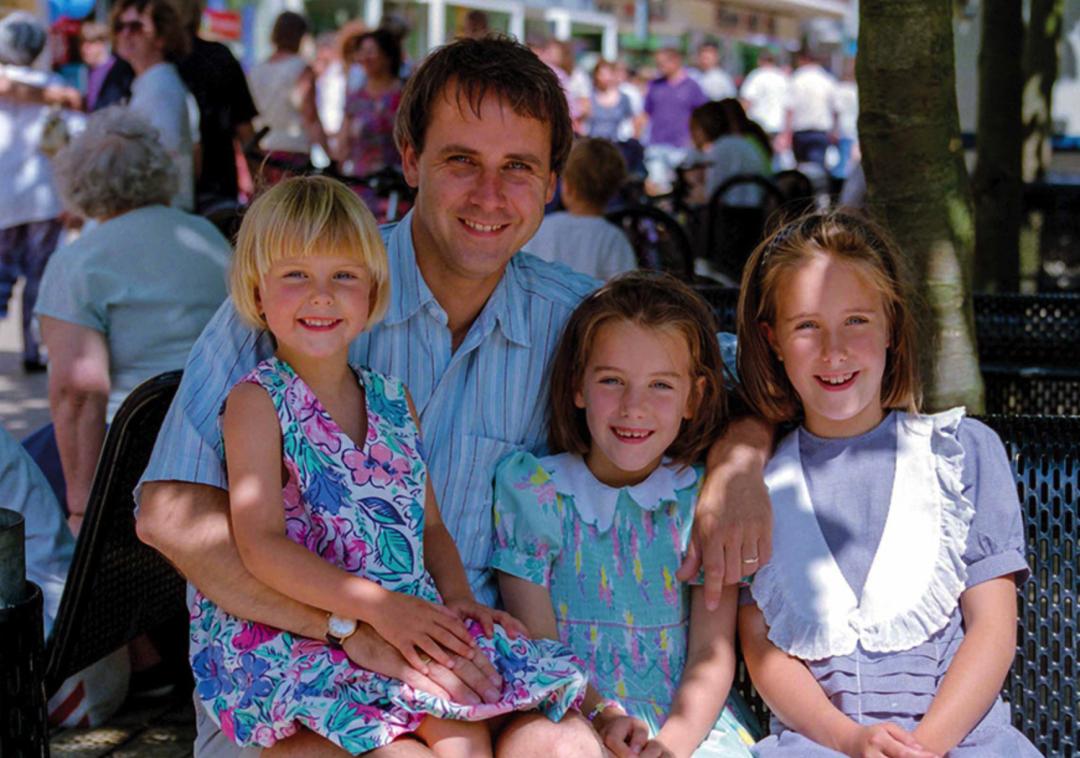 1994年,一位爸爸带着自己的三个宝贝女儿对着Chris摆起了pose:
