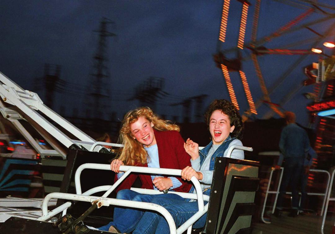 1985年,两位即将满16岁的妙龄少女,正在当地的游乐园市集玩着刺激的游乐项目: