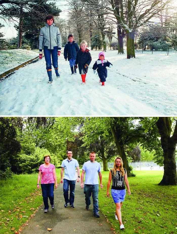 时隔整整40年的两张家庭合照,妈妈带着自己的三个孩子。40年前,妈妈显得好大,仿佛三个宝宝的保护天使一般;40年后,妈妈成了身板最小的那个,该换孩子们保护妈妈~