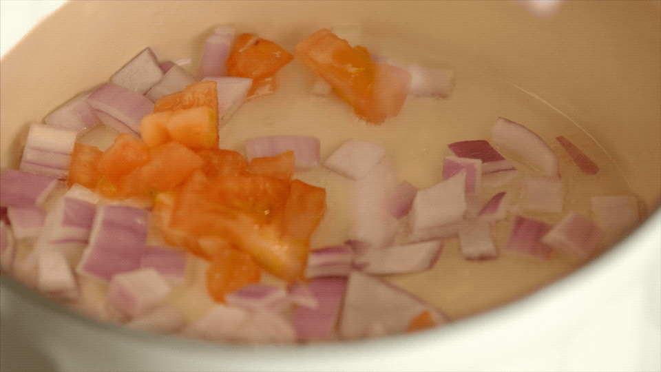 再教大家一个在家就能轻松做的番茄汤底,步骤简单又特别好吃。热锅冷油,倒入切好的番茄和洋葱,加入生抽、番茄酱、蚝油和一点点盐,番茄翻炒出汁后,我们往里加入开水。
