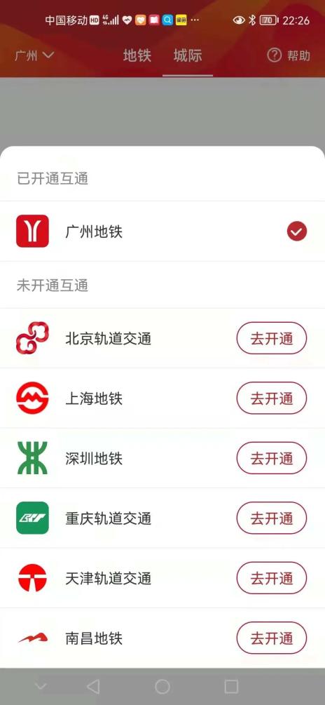广州地铁APP、成都地铁APP、(苏州地铁)苏E行APP、(无锡地铁)码上行APP、常州地铁APP、(郑州地铁)商易行APP、(洛阳地铁)洛易行APP、福州地铁码上行APP、石家庄地铁APP、长春地铁APP、哈尔滨地铁APP、(沈阳有轨)智慧电车APP、城轨易行APP