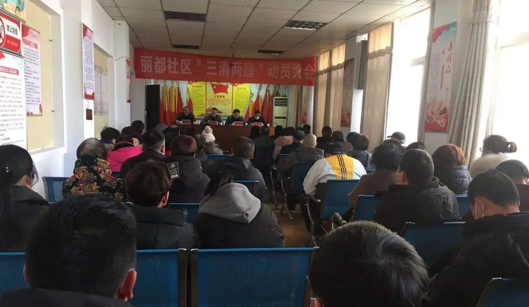 丽都社区12月27日下午,邙山街道丽都社区召开“三清两建”专项行动动员部署会。副县级干部张雅峰、区派驻工作组成员、街道负责人及社区“两委”干部、全体党员、居民小组组长参加会议。