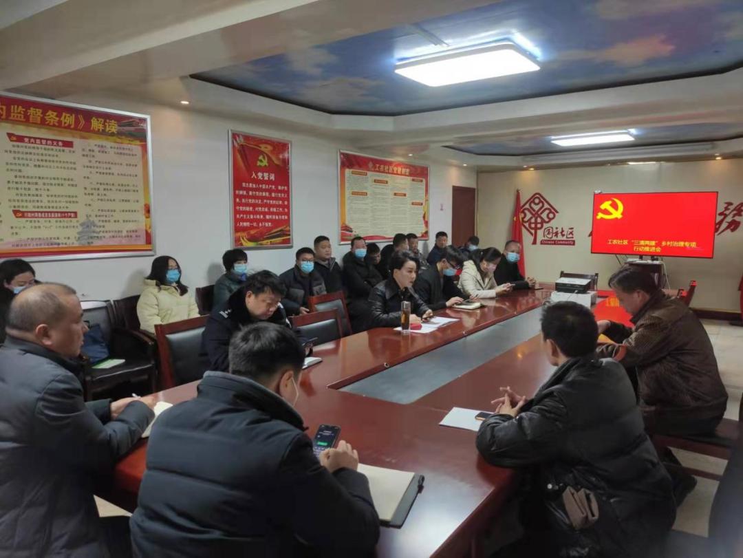 12月27日下午,南关街道工农社区召开“三清两建”乡村治理专项行动动员会。副县级干部罗俊洲、区派驻工作组、街道专班及社区三委成员参加。