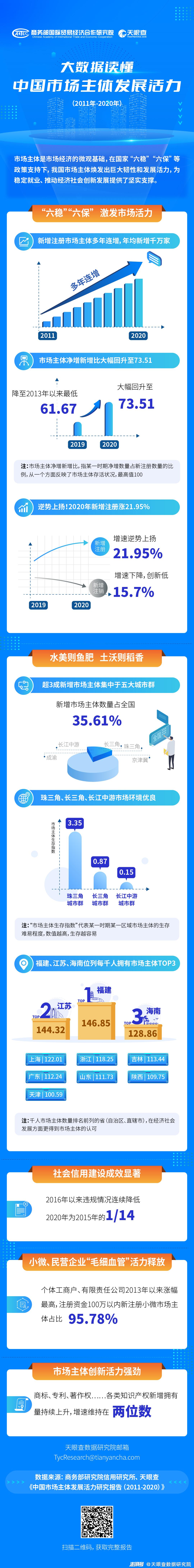 近日,商务部研究院信用研究所联合天眼查公司发布《中国市场主体发展活力研究报告(2011-2020)》。