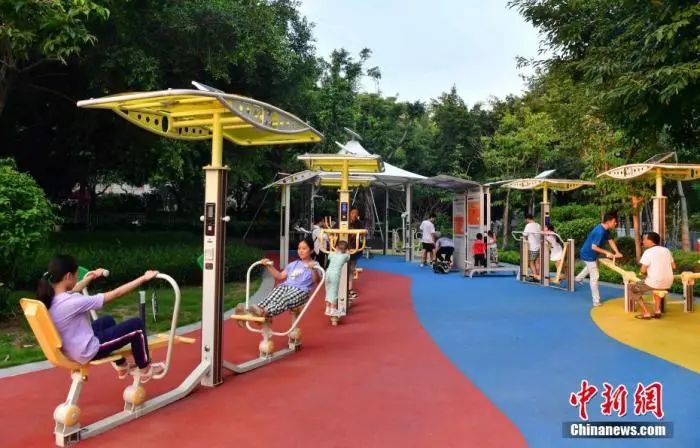 8月,福州市民在园内体验智能运动器械。张斌 摄母亲爱锻炼孩子的体质或更好