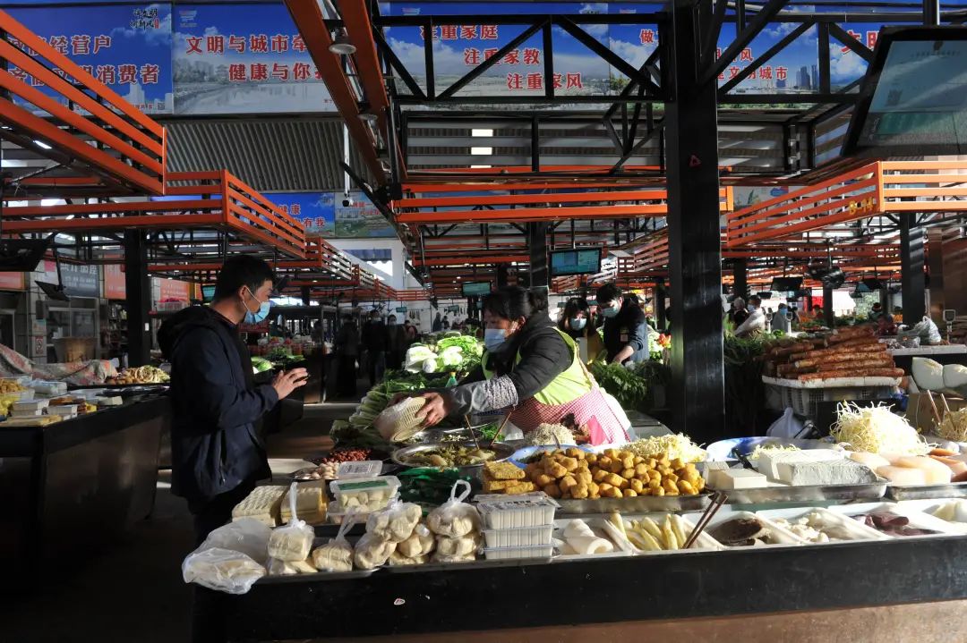 市场上,蔬菜区里的黄瓜、茄子、白菜、花菜、马铃薯码放得整整齐齐;肉类区里的牛肉、羊肉、鸡肉、鸭肉都有固定的销售区域,熟食作坊都有隔离窗,看起来清爽干净,前来采购的市民悠然自得。“我天天都来买菜,价格没啥变化,我觉得要买的都能买到,物资没有紧缺。”昆钢退休职工王强说,虽然有疫情影响,但安宁市政府做了很多贴心的工作,让大家感到安心。