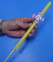 你可以一手拿着吸管,另一手拿着竹筷前后来回滑动,观察一下,四叶轮是不是会快速旋转起来呢?