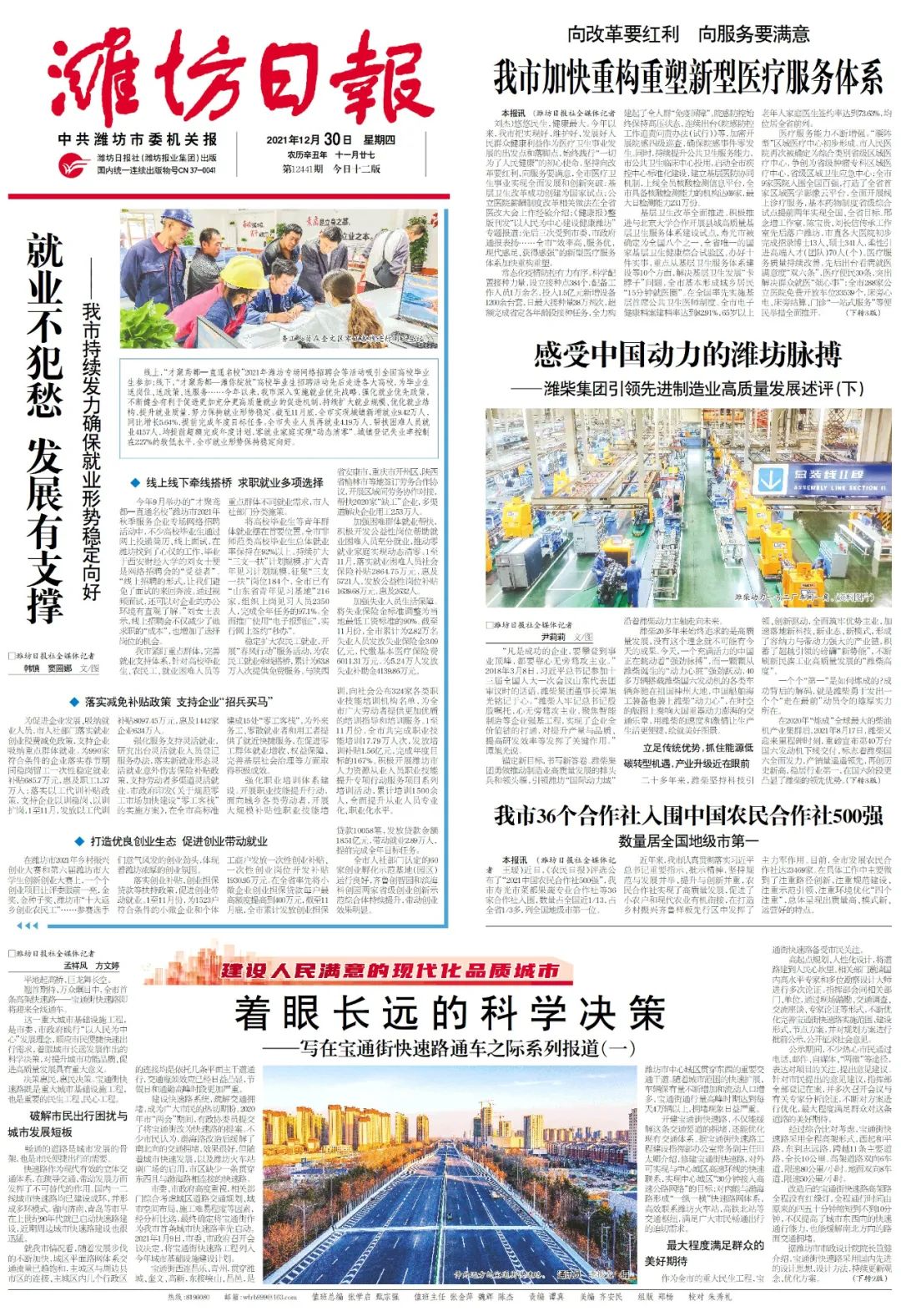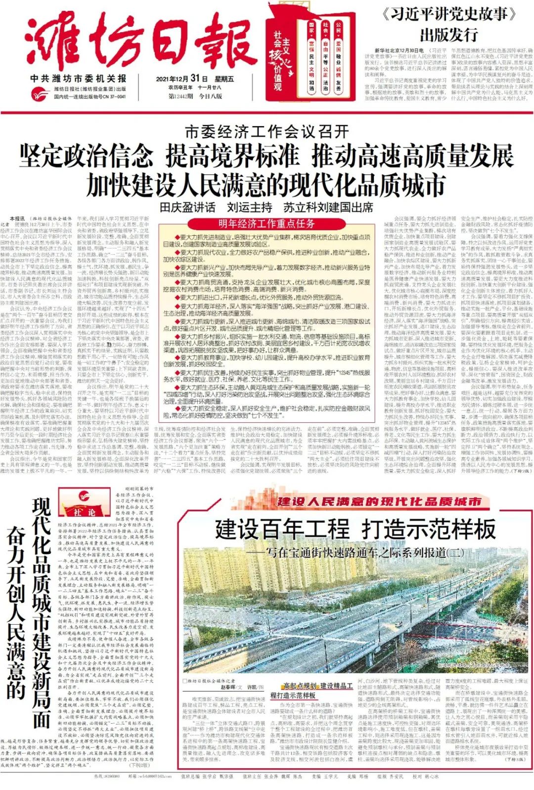 2021年年初,市委、市政府着眼建设人民满意的现代化品质城市、顺应市民便捷快速出行需求、解决交通出行拥堵问题,启动了宝通街快速路工程,历经258天的日夜奋战,在新年伊始、万象更新的元旦当天,宝通街快速路正式通车,潍坊市立体交通网络进一步完善,交通更加顺畅,潍坊市民感受到的是满满幸福。潍坊日报在宝通街快速路通车之际连续推出四篇系列报道。