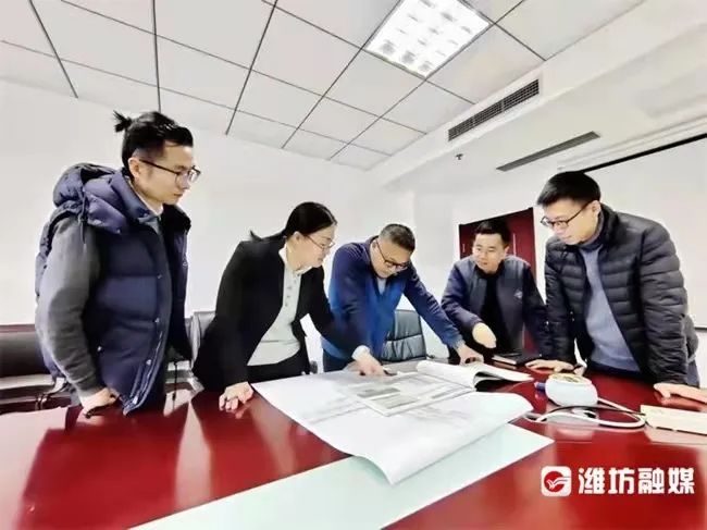 潍坊市政设计院项目组工作人员在讨论设计方案。