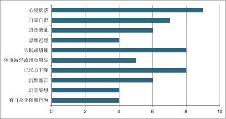 悲观绝望,生不如死。部分可伴焦虑、激越。晨重夜轻。自我评价过低,自卑、自罪、自责。可有罪恶妄想。部分病人可有幻觉妄想。