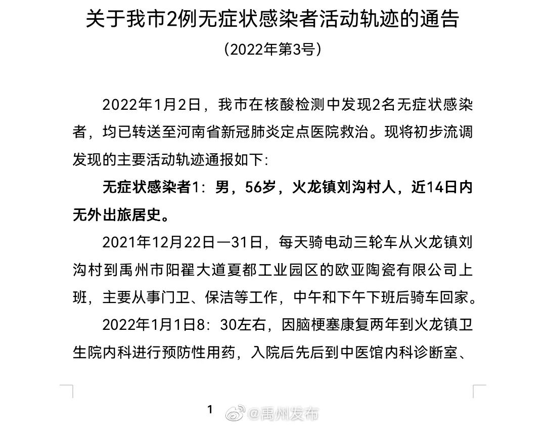 每天3分钟 尽览天下事(刚刚,许昌禹州2例无症状感染者活动轨迹公布/今晨,新安通报新增2例无症状轨…